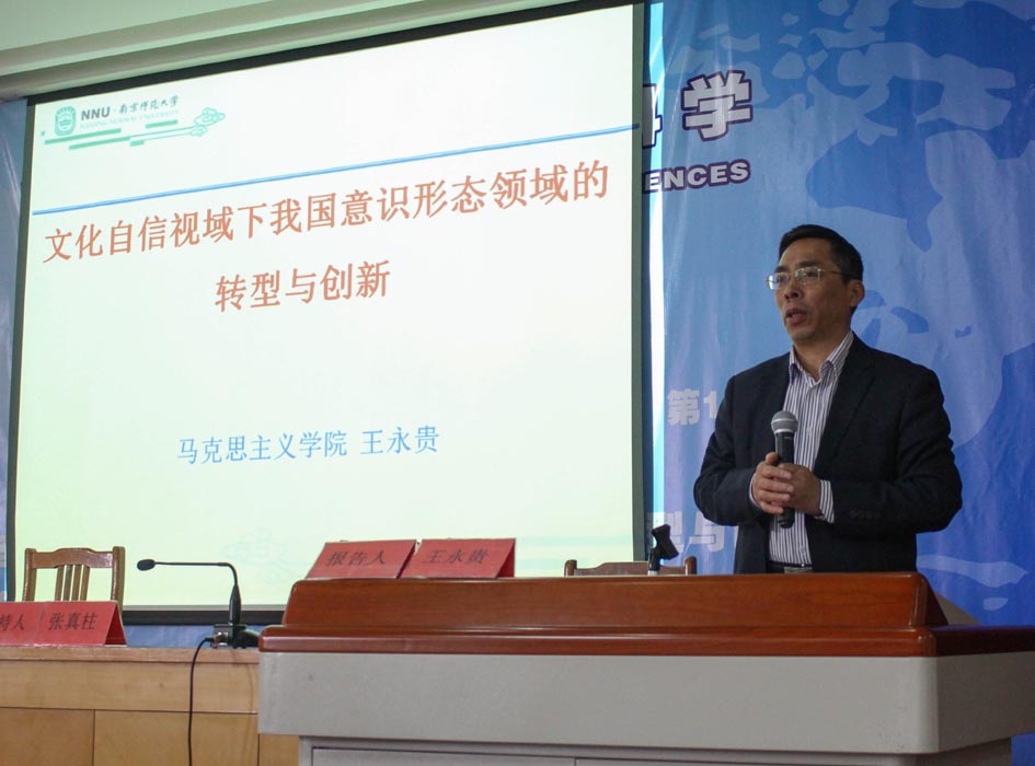 王永贵首先指出,文化自信的前提是要有文化自觉,深刻把握文化自信的连续性、现实性、开放性以及基础性等特征,自觉担当起肩负的文化使命,不断推动当代中国文化和主流意识形态建设。他认为,党的十八大以来,意识形态领域在思想内涵、功能定位、话语变迁、关注对象、传播机制、管理方式以及对外传播等七个方面发生了深刻的变化。要准确把握意识形态领域转型的新态势,其中,最重要的是抢占话语权,重视网络时代背景下传播机制的转型以及对外传播,即“讲好中国故事”。