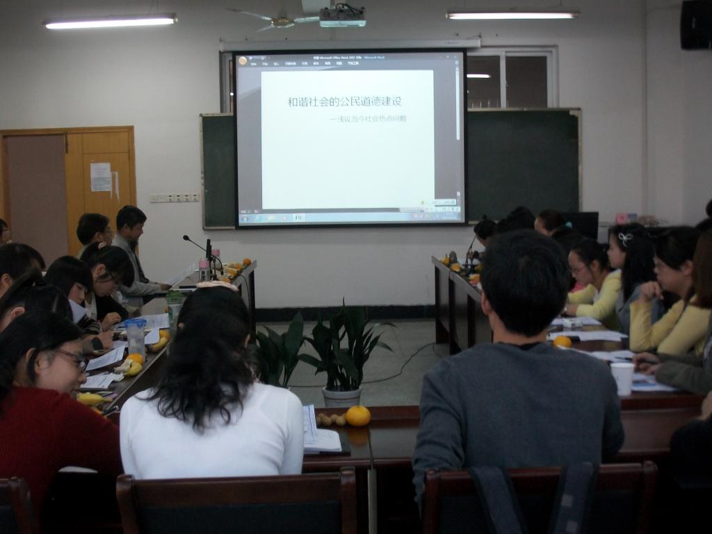 10月28日下午,2013学年第一学期的第一场学术沙龙在学院102室举办,本期沙龙主题是“和谐社会的公民道德建设——浅议当今社会热点问题”。此次沙龙由思想与政治教育专业主办,院长陈正良教授、马克思主义中国化教研部主任于成文副教授、马克思主义中国化专业导师薛秀霞副教授等担任点评嘉宾。