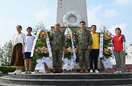 作为受邀单位,参与了此次纪念活动。在活动过程中,学生代表何羽茜与社会各界代表共同向抗战先烈敬献花篮,随后移步至老兵园,向抗战老兵献上花朵,以表达对先烈的深切缅怀。
