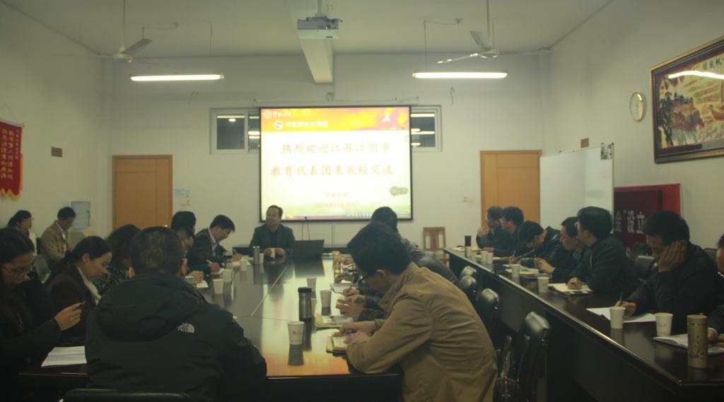 11月25日下午,江苏省江阴市教育局分管局长、职社科全体在职人员及各职业学校校长等19人来到我院交流。