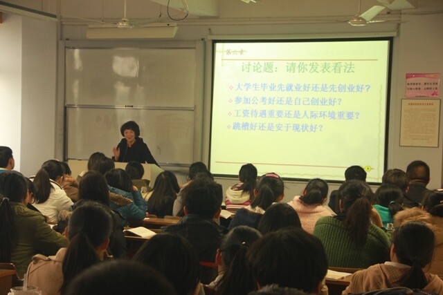 在课堂上,孔伟英副教授精彩讲授了“大学生的择业与创业”章节的教学内容。她以问题为引领,结合成人有声小说