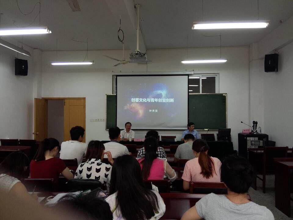 师生作了题为“创客文化与年轻人创业创新”的讲座。本次讲座为我校“企业家、高管进校园系列讲座”之四十六讲。学院党总支书记、副院长郑礼平主持会议。