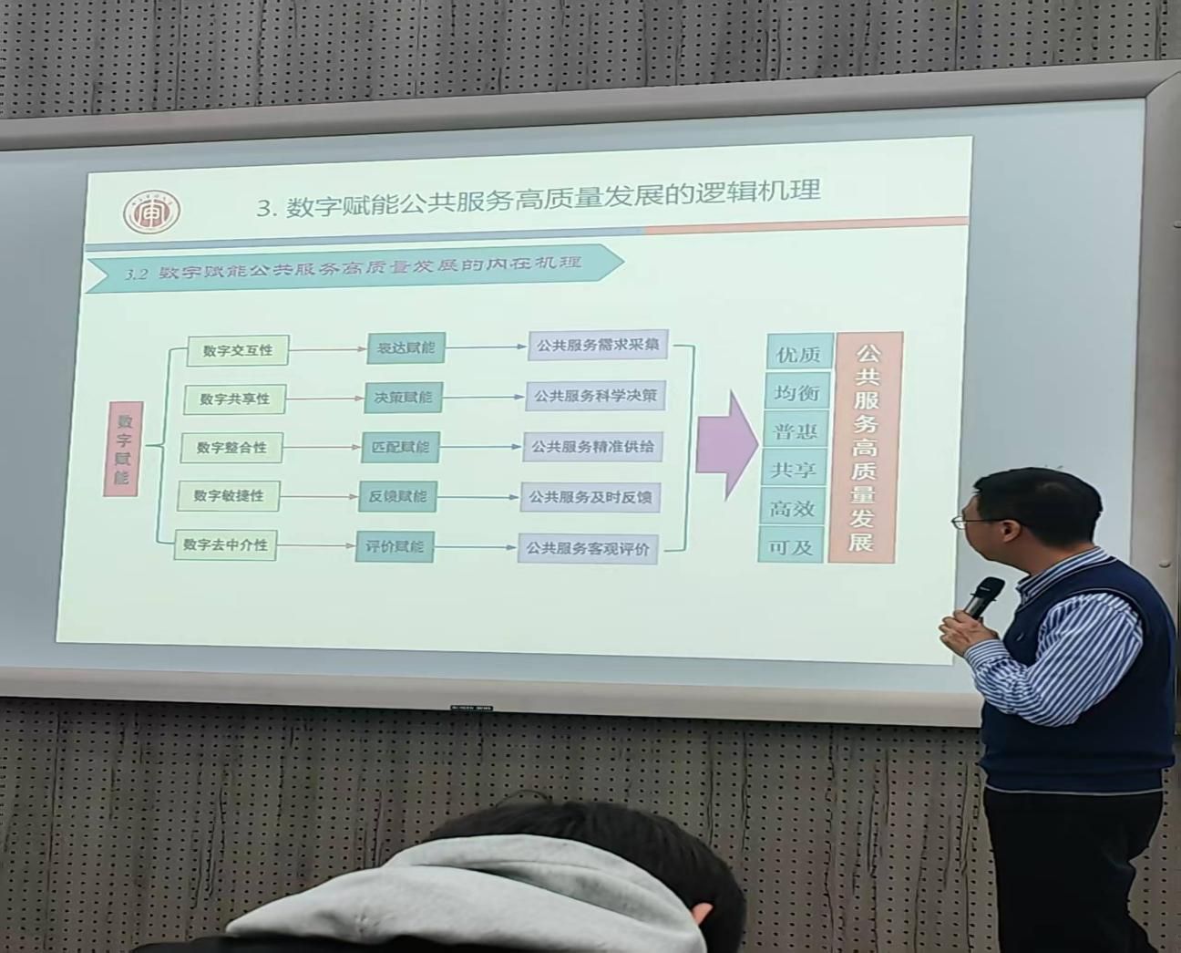 主办的“公共管理专题讲座”在2号楼阶二教室圆满举行。本次讲座以“数字赋能公共服务高质量发展:内在机理与实现路径”为主题,特邀南京审计大学公共管理学院博士生导师詹国彬教授担任主讲嘉宾,为在场师生带来了一场内容丰富、见解深刻的学术盛宴。