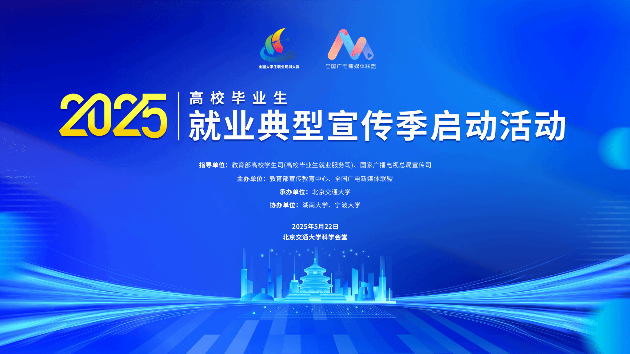 5月22日,2025年高校毕业生就业典型宣传季启动活动在北京交通大学正式拉开帷幕。本次活动由教育部高校学生司(高校毕业生就业服务司)和国家广播电视总局宣传司指导,教育部宣传教育中心、全国广电新媒体联盟共同举办。