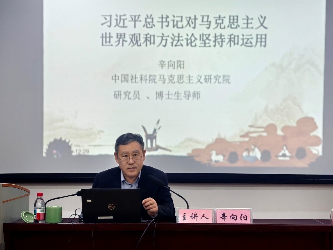 辛向阳教授的报告立足马克思主义理论的核心要义,结合新时代中国特色社会主义实践,系统阐释了习近平总书记对马克思主义世界观和方法论的坚持与创新运用。首先,指出党的十八大以来,习近平总书记十分重视马克思主义世界观和方法论,强调马克思主义立场、观点、方法的掌握和学习。随后,指出了习近平总书记强调辩证唯物主义和历史唯物主义世界观和方法论的学习和运用。辛向阳教授通过结合2013年第十八届中央政治局第11次集体学习、以及2023年6月文化传承发展座谈会等重要场合,深入解读了学习和掌握社会基本矛盾分析法以及用马克思主义世界观和方法论阐述中华文明的突出特性等重要思想,阐明了马克思主义世界观和方法论对准确认识国情、把握社会发展阶段性特征、推动事业持续前进的关键指导作用。最后,指出习近平总书记强调学习和运用马克思主义政治经济学基本原理和方法论,有利于我们掌握科学的经济分析方法,认识经济运动过程,把握经济发展规律,提高驾社会主义市场经济能力,准确回答我国经济发展的理论和实践问题。