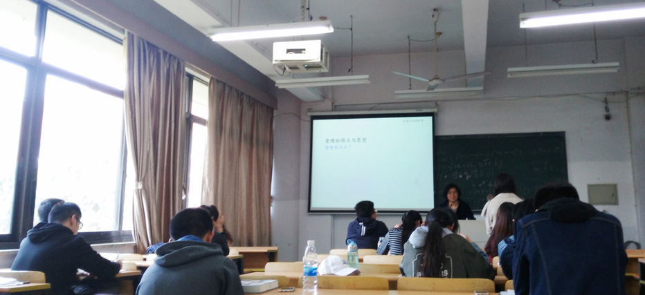 本次公开课由李桂英老师主讲,主讲内容为《社会心理学》课程“爱情”部分。李桂英首先用一组经典的影视作品来导入课程主题。在优美的音乐声中,学生们不由地浮现出甜蜜的笑容。“什么是爱情?”李桂英适时提问。“我从文学作品中的人物来理解,比如简·奥斯汀的爱情观,她选择坚守自己的爱情。”“爱情是真心的、是坦诚和宽容。”“每个人欣赏的角度都不一样。”学生们不时表达自己的观点。“那么,爱情都有哪些特点和类型?激情之爱能否持久?如果不能,那什么可以取代它?” 通过PPT展示的丰富图片,李桂英老师非常感性地表述出:爱情是人际吸引最强烈的形式,是身心成熟到一定程度的个体对异性个体产生的有浪漫色彩的高级情感。并进一步阐述了关于罗伯特·斯腾博格的爱情三元论:爱情具有亲密、激情、承诺三项基本成分或元素,这些成分可互相组合,形成不同类型的爱情。