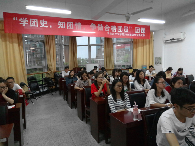 在102报告厅举行 “学团史,知团情,争做合格共青团员”团课活动。本次活动由蒋莎莎同学主持,学院50余名本科生、研究生团员参加。
