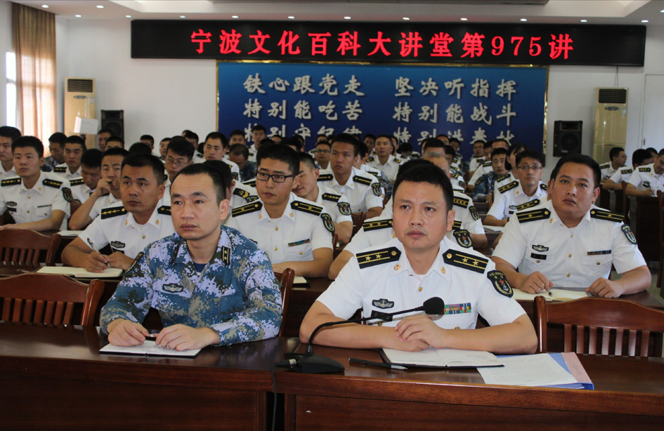 9月26日,应中国人民解放军92899部队的邀请,由宁大成人有声小说 副教授鲍展斌主讲的宁波文化百科大讲堂第975讲:《实践论》与《矛盾论》导读走进军营,部队骨干以上听众110人左右聆听了讲座。