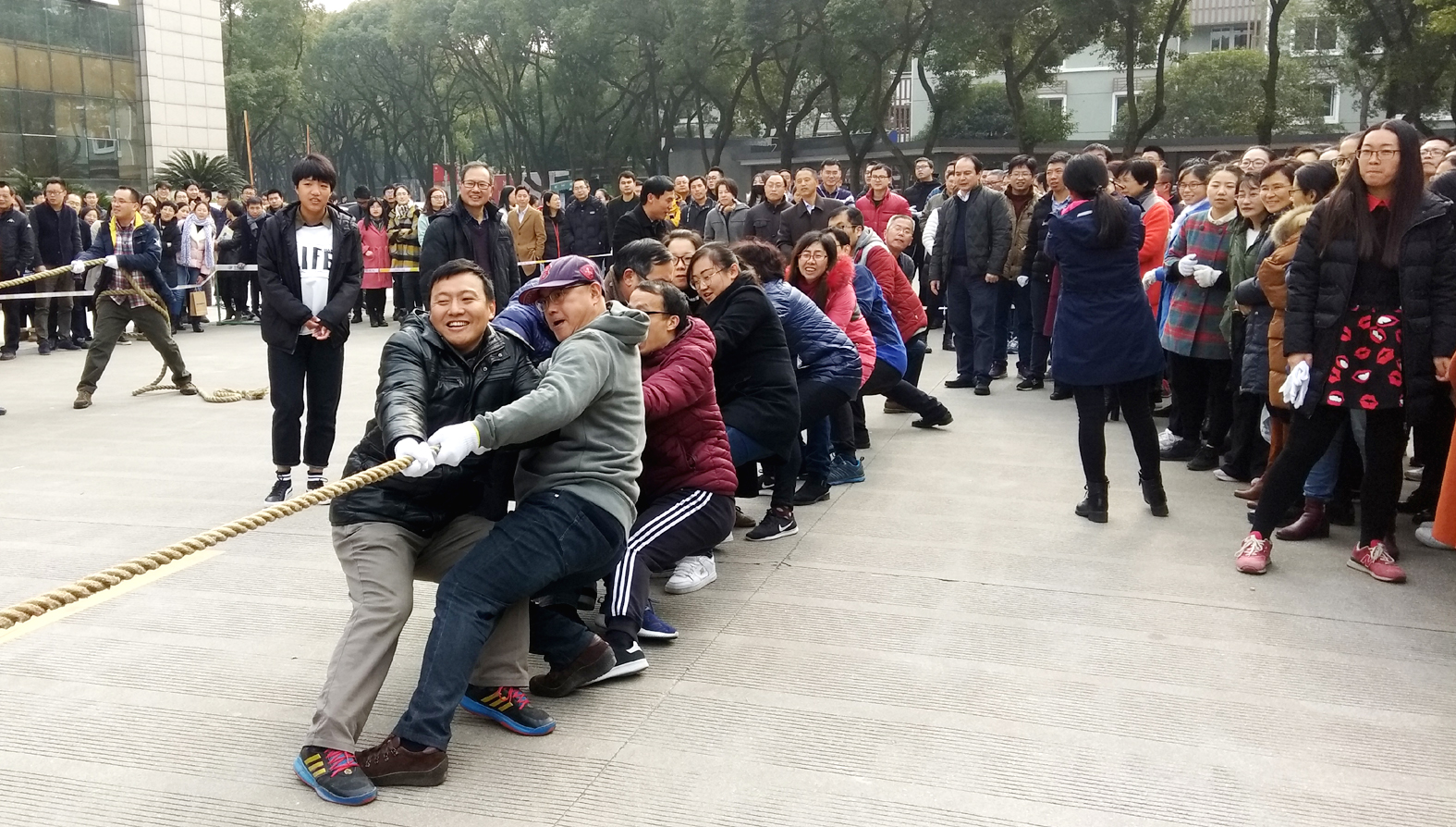 “迎新年”教职工拔河比赛在安中大楼前拉开帷幕。成人有声小说