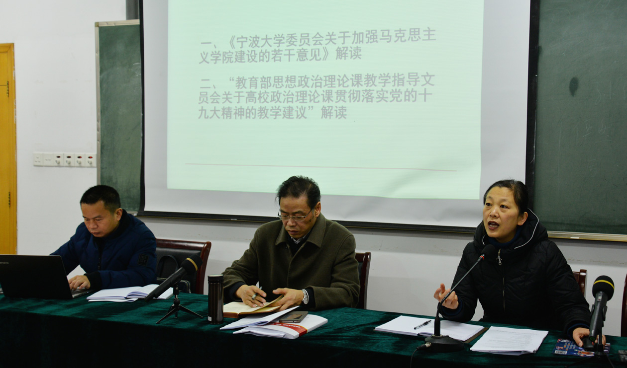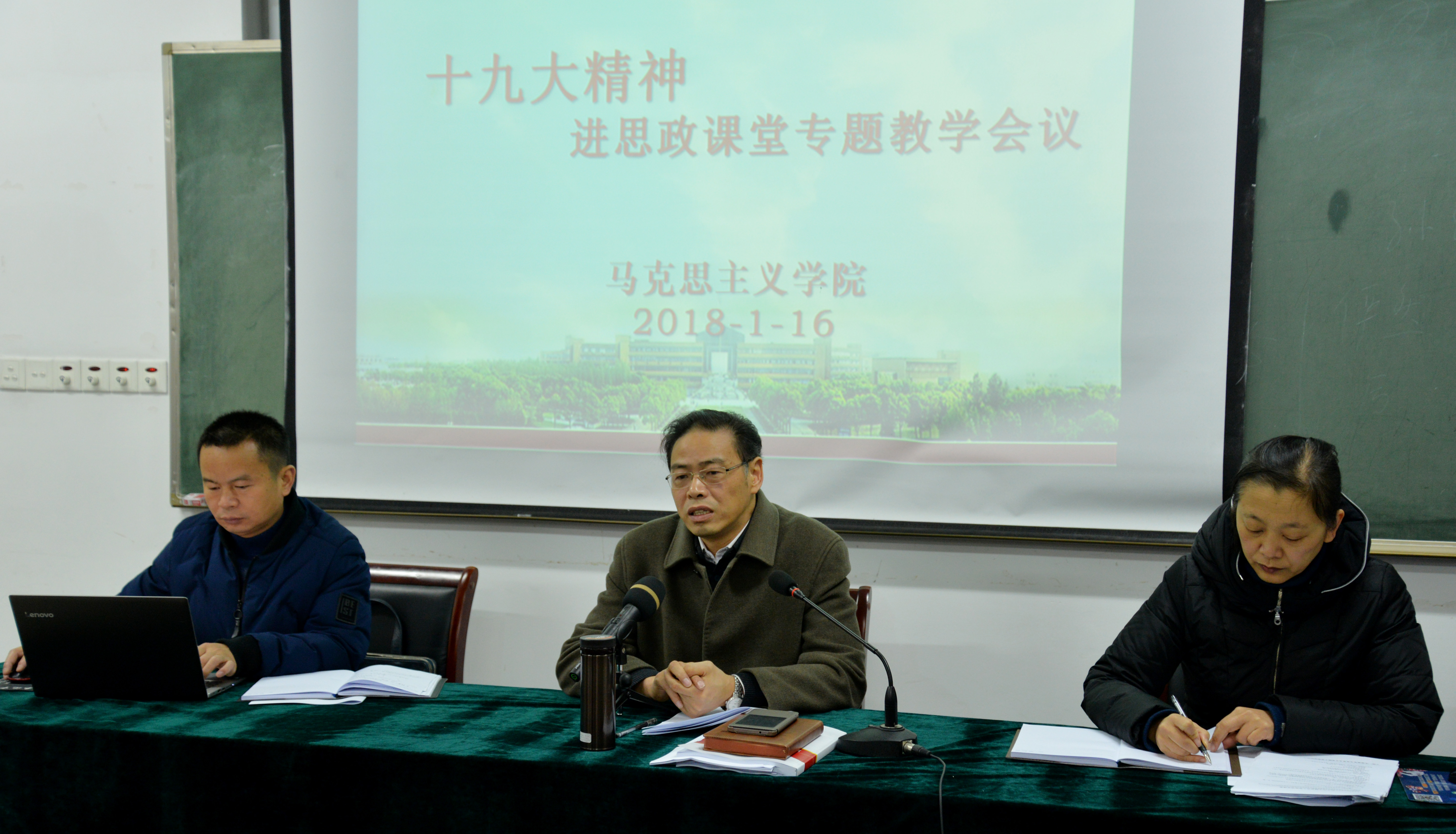 。方书记在传达《教育部思想政治理论课教学指导委员会关于高校政治理论课贯彻落实党的十九大精神的教学建议》文件精神时强调,十九大精神进课堂首先要先进头脑,再进课堂;要不断深入推进,形成教学规范;要有机融入课程,提升教学效果。