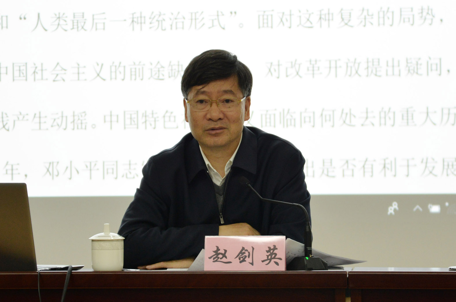 赵剑英教授首先作报告,围绕“中国化马克思主义哲学开启当代中国改革开放的历史大幕”、“中国化马克思主义哲学为破解改革开放中的重大难题、不断推进改革开放提供智慧”、“创造性运用和发展马克思主义哲学,形成指引新时代改革开放再出发的方法论”三大方面,从哲学的角度论述了中国化马克思主义哲学引领改革开放的伟大历史进程。