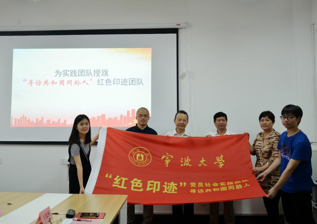 活动最后,王慕洲为“寻访共和国同龄人”红色印迹实践团队授旗。