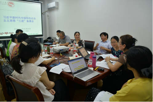 思想政治教育与社会发展教研部组织召开习近平新时代中国特色社会主义思想“三进”备课会。思政教育教研部教师共十余人参加会议,教研部主任薛秀霞老师主持会议。