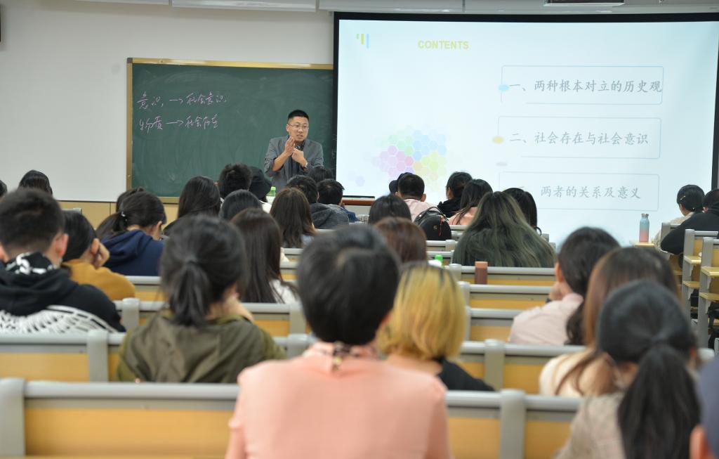 课上,司博士从“两种对立的历史观”、“社会存在与社会意识”、两个方面进行了阐释。司博士博闻强记,教学语言幽默,教学内容娴熟接地气,教学态度认真,以案例与理论讲解相结合的教学方式讲授课本知识,达到了优良的教学效果,展示了成人有声小说