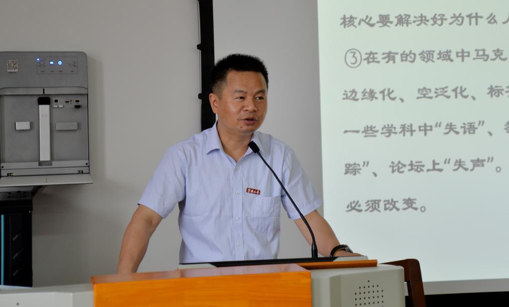 李包庚首先阐释了什么是学术论文?他指出,学术论文具有学理性、前瞻性、新颖性、针对性等基本特征,并点明了学术论文、学位论文和专著的联系和区别。关于学术论文的两个争议问题,李包庚认为,学术论文要有责任担当、家国情怀,就必然会涉及到意识形态方面的问题,学术论文应该“顶天立地”,而不是“空中楼阁”和“海市蜃楼”。围绕学术论文的基本要求与规范问题,李包庚表示,学术论文的规范性包括两个方面:一是形式规范,二是内容规范。就形式规范而言,要厘清摘要、关键词、参考文献、引文注释的格式,尤其要注意标点符号的规范性,一定要使用学术语言,尽量精炼,避免句式冗长、拖沓,要学会用学术话语讲政治;就内容规范而言,学术论文由“三部分”组成,每一段三点,一共九点,可谓“三段论式”。最后,李包庚讲解了关于学术论文的“理论假定”问题:在论证过程中,可以运用多种方法,构架基本架构、科学求证并验证其观点。