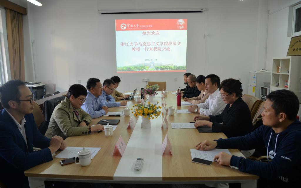 段治文教授一行6人来院交流座谈,就如何上好中国近现代史纲要课程以及如何开展思政教学实践等进行了研讨。执行院长李包庚出席会议。副院长曲蓉、中国近现代史纲要教学中心主任薛秀霞及相关老师参加了座谈。