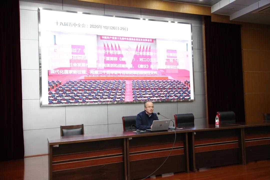 郑善庆首先对全会精神进行了整体解读,分析全会召开的背景,会议取得的成果,规划起草的主要内容。让老师们知晓十九届五中全会是在我国将进入新发展阶段,实现中华民族伟大复兴关键时期召开的一次重要会议;了解到“十四五”是我国全面建成小康社会,实现第一个百年奋斗目标之后,向第二个百年奋斗进军的第一个五年;认识到我国发展仍然处于重要战略机遇期,面临的国内外环境正在发生深刻复杂的变化。