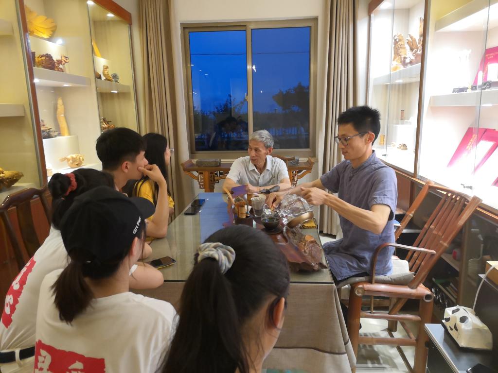 小分队深度走访了当地三位非遗传承人:宁波走书传承人陈亚娟、竹编传承人张心荣以及竹刻根雕传承人吴晓华。从生动有趣的宁波走书,到具有审美和实用双重价值的竹编作品,再到美轮美奂的根雕竹刻作品,无不展现着文化传承者的匠心和与时俱进的创新精神。非遗传承人不仅承担起继承、创新、弘扬非遗文化的责任,而且在政府的引领下,用非遗文化带动当地村民共同谋求物质和精神富裕之路。