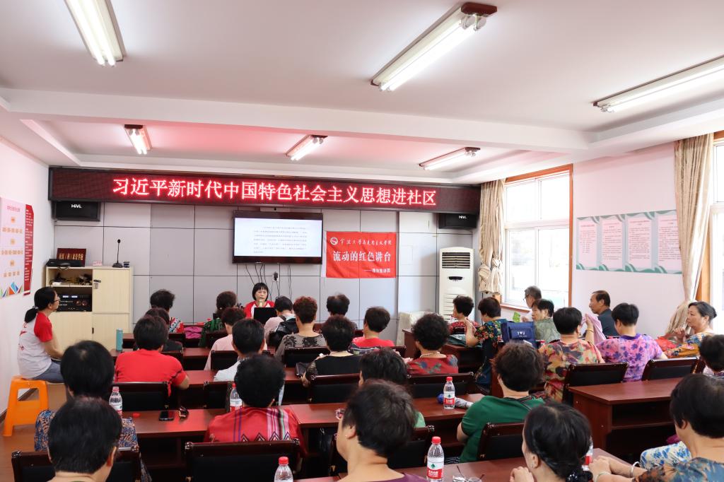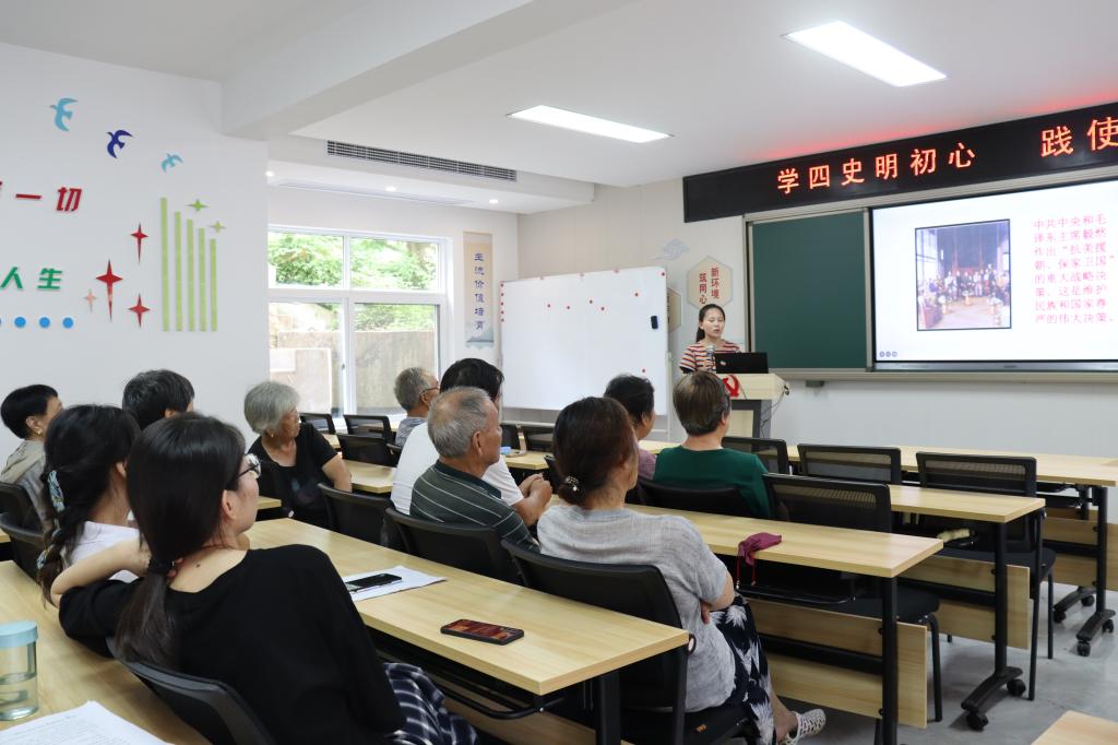 杨芳老师以《建设人与自然和谐共生的美丽中国》为主题进行宣讲,借助文字、图片、故事、视频等形式,阐释了“绿水青山就是金山银山”的生态理念;袁玲儿老师以《新时代执政党建设》为主题,从基层党组织入手,结合生动的小故事以及理论知识,深入浅出,为基层的党组织建设提供了丰富的经验。
