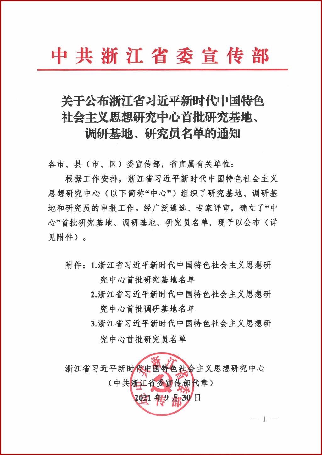 9月30日,浙江省习近平新时代中国特色社会主义思想研究中心公布了首批研究基地、调研基地、研究员名单,成人有声小说