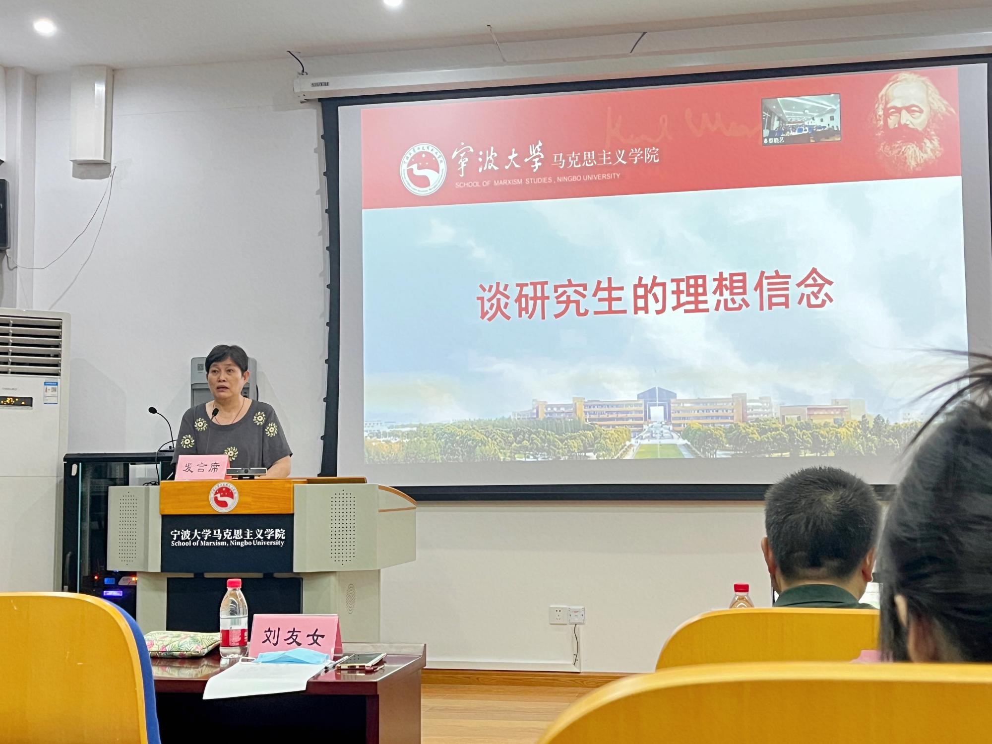 学院党总支书记刘友女首先指出,作为马理论专业的研究生,当前的研究主题要紧紧抓住党的二十大这一国之大者来展开;要发挥专业优势,积极关注党的二十大中的创新理论和观点,做好解读、宣讲工作。她希望同学们切实发挥主观能动性,在社会大熔炉中锻炼自己,增长才干、完善自我。