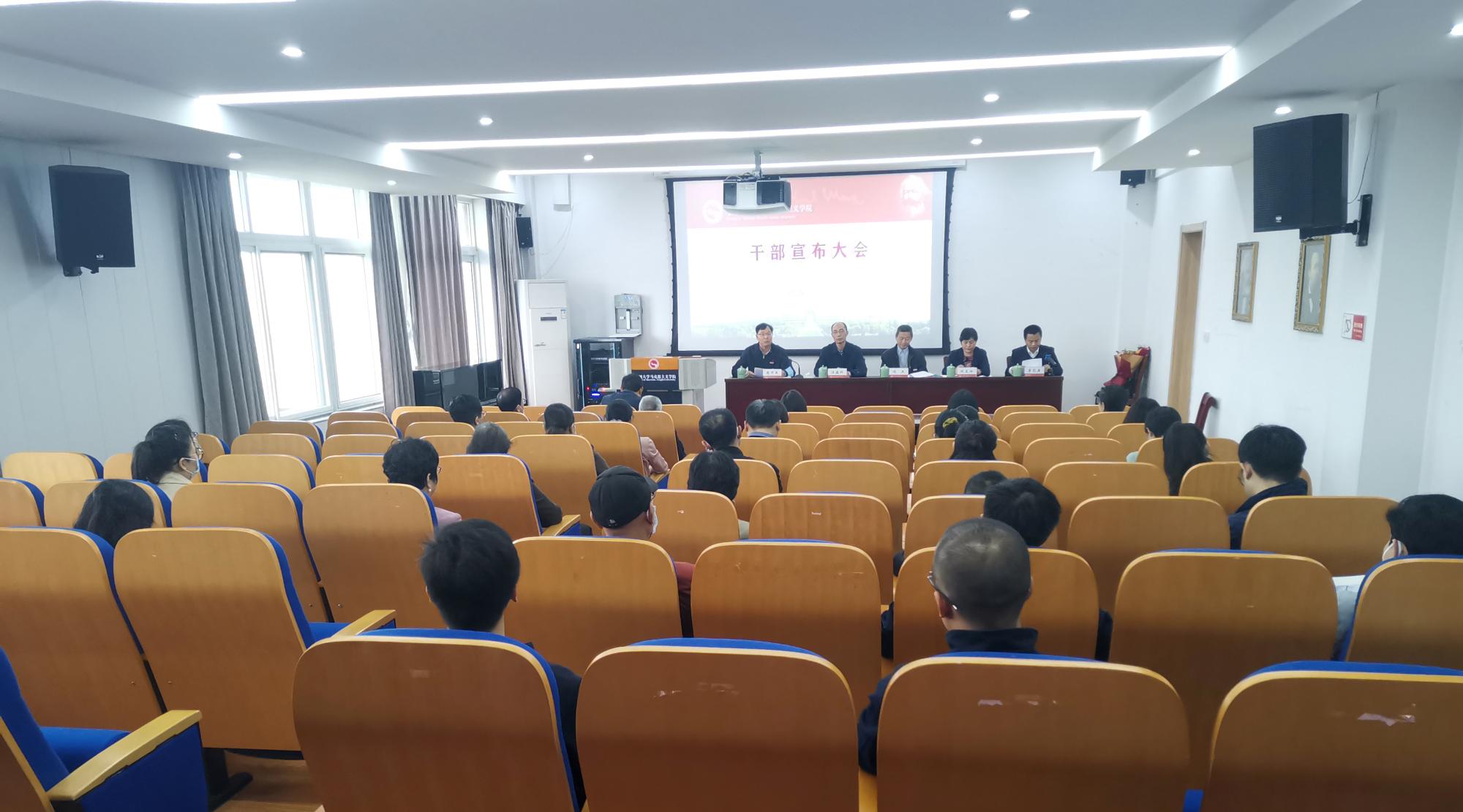 领导干部宣布大会在包玉书科学楼7号楼406报告厅召开。学校党委副书记冯杰、发展规划处处长汪盛科出席会议。
