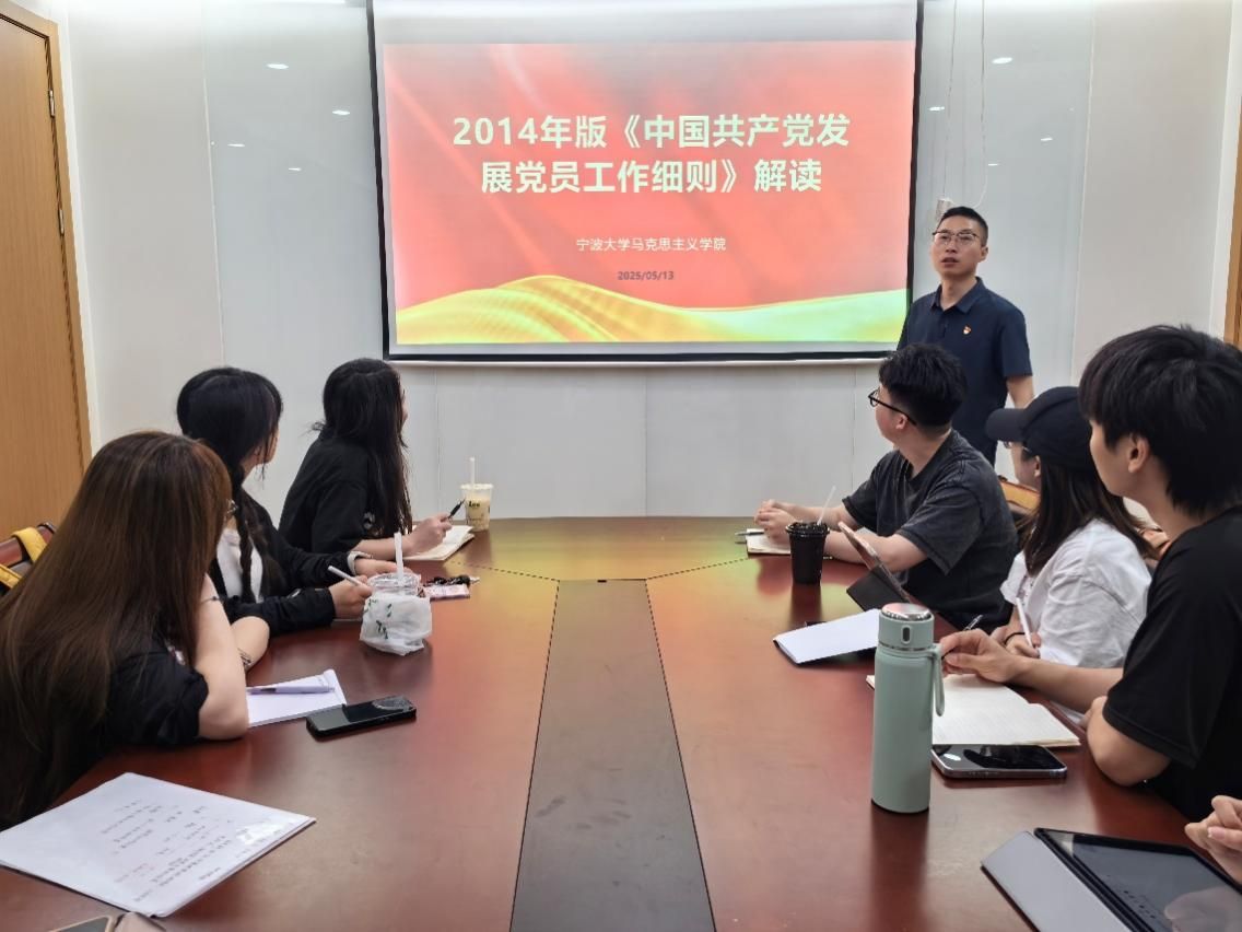 培训会上,学院专职组织员詹文喜带来了一场内容丰富、实用性强的专题讲座。他以《2014版 <中国共产党发展党员工作细则> 解读》为题,深入解读细则修订的时代背景与指导原则。他结合当下学院学生党建工作实际,对比分析新旧版本细则内容,让大家明晰发展党员工作在新时代的新要求。