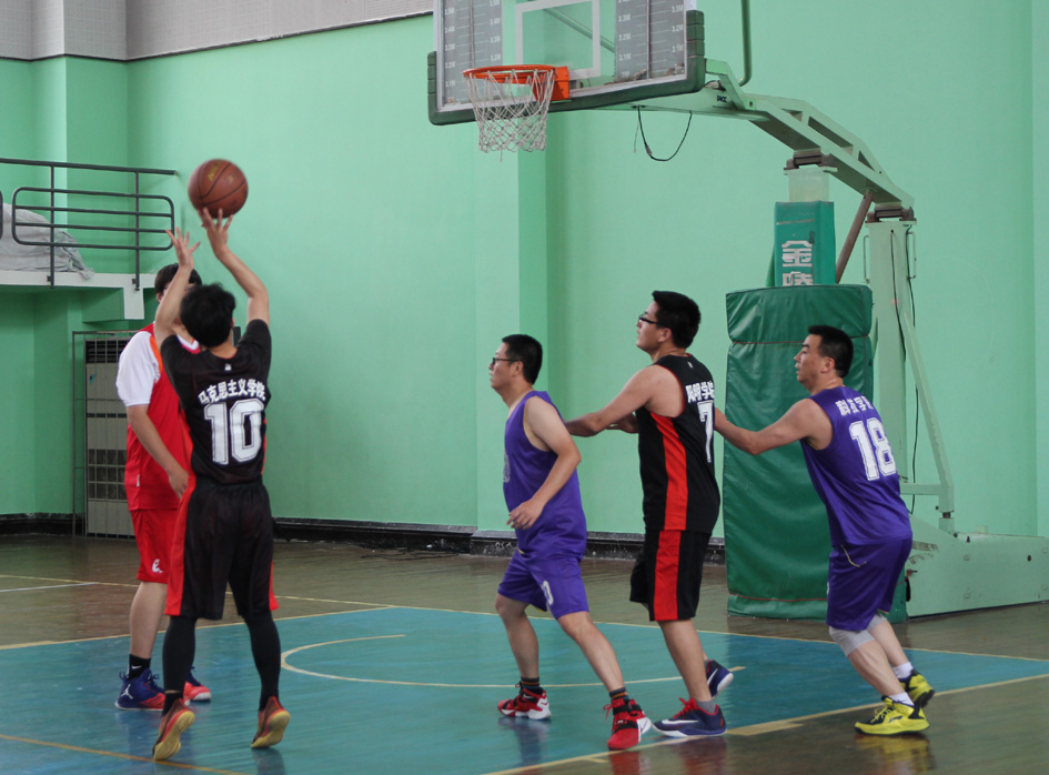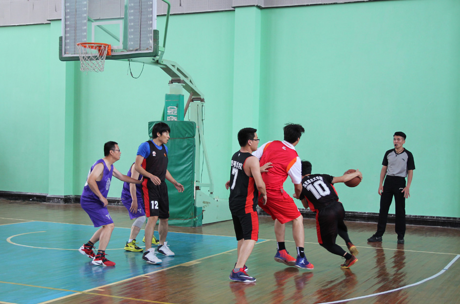 “好球!”“哎呀,可惜了,加油!”5月9日中午,体育学院篮球馆内喝彩声、加油声响成一片,由校工会组织的2017教工男子“三人制”篮球赛揭幕战正在进行。