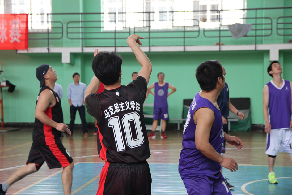 联合阳明学院组队参加了此次比赛。两学院队员间通力协作,奋力拼搏,在篮球赛场上挥洒着热情和汗水。在第一轮的小组循环赛中,阳明马克思联队第一个对阵的对手是科技学院,虽然对方实力强劲,但队员们毫不示弱。赛场上队员们精神抖擞,你争我夺,一个个漂亮的抢断,一次次默契的传球配合,一颗颗精彩的进球,不时博得场边观众们阵阵掌声和助威声。阳明马克思联队最终以较小分差惜败。