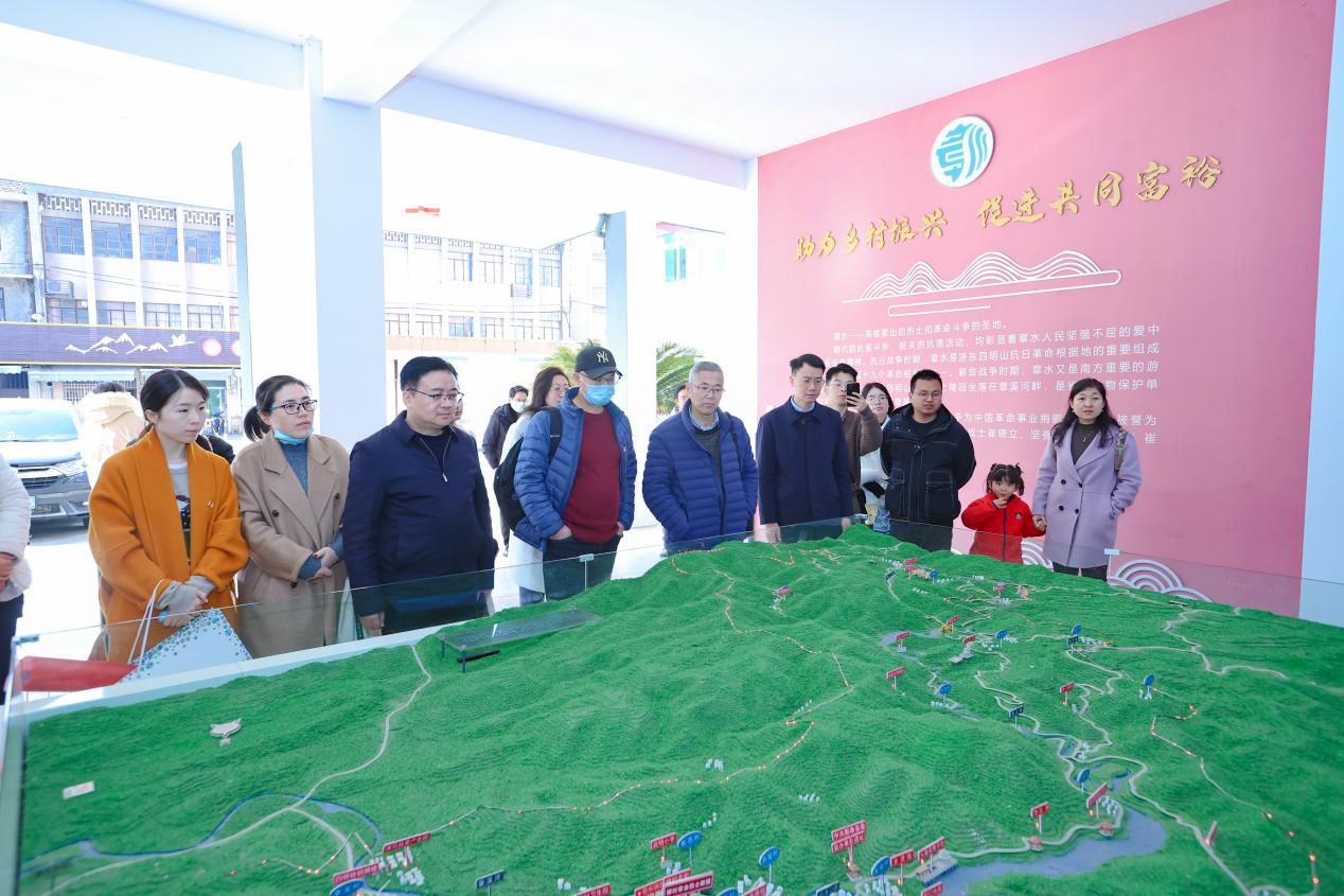 稍作休整,同学们在老师带领下一起走访了“章溪印象”沿溪步道调研新农村建设水利振兴乡村示范点。走访章水,一路见闻,真切地感受到了革命老区的变化。在党的领导下,如今的老区人民踏上了新的征程。鄞西章水,一方洒满烈士鲜血的热土,一座孕育英雄的红色古镇,沉淀了红色历史,也丰富了生态旅游。
