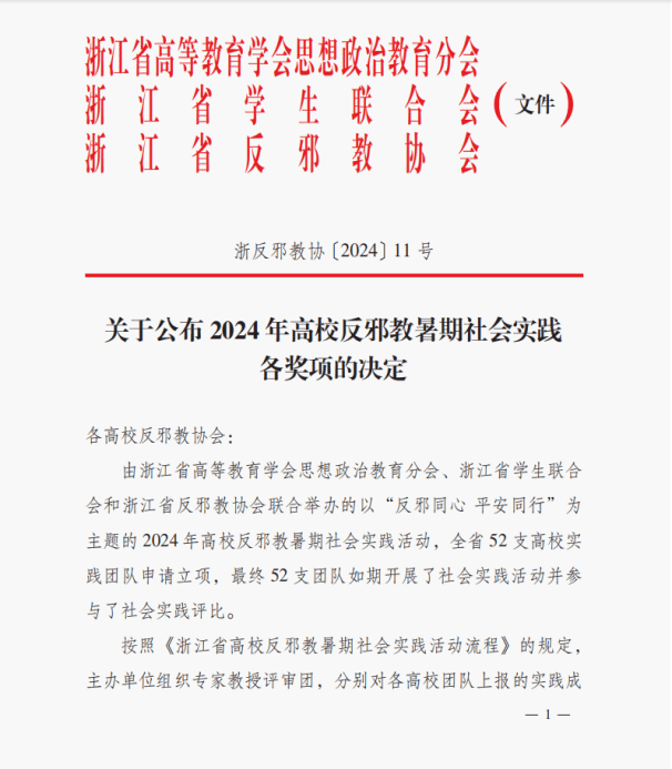 喜报!成人有声小说 中特社团荣获2024年浙江省高校反邪教暑期社会实践一等奖