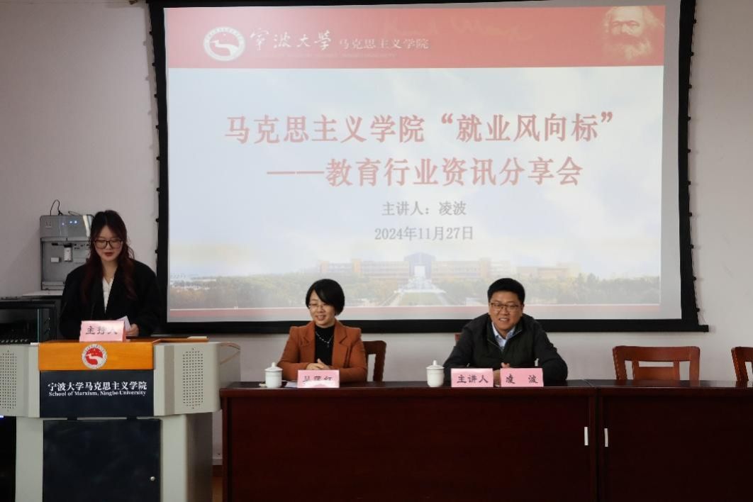 11月27日下午,成人有声小说 “就业风向标”——教育行业资讯分享会在包玉书科学楼7-406会议室举办。活动特邀宁波市教育考试院副院长凌波作咨询分享,院党委副书记吴莲红出席,就业辅导员曹慧娟主持,本研共100余名学生参加。