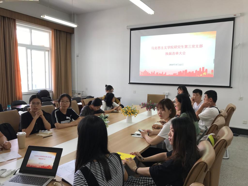 第三研究生党总支部换届选举大会,本次会议由19级研究生团支书舒英主持,院团委书记杨曼老师、学生助理毛航、研究生第二党支部书记刘云霞以及15名党员参加了本次大会。