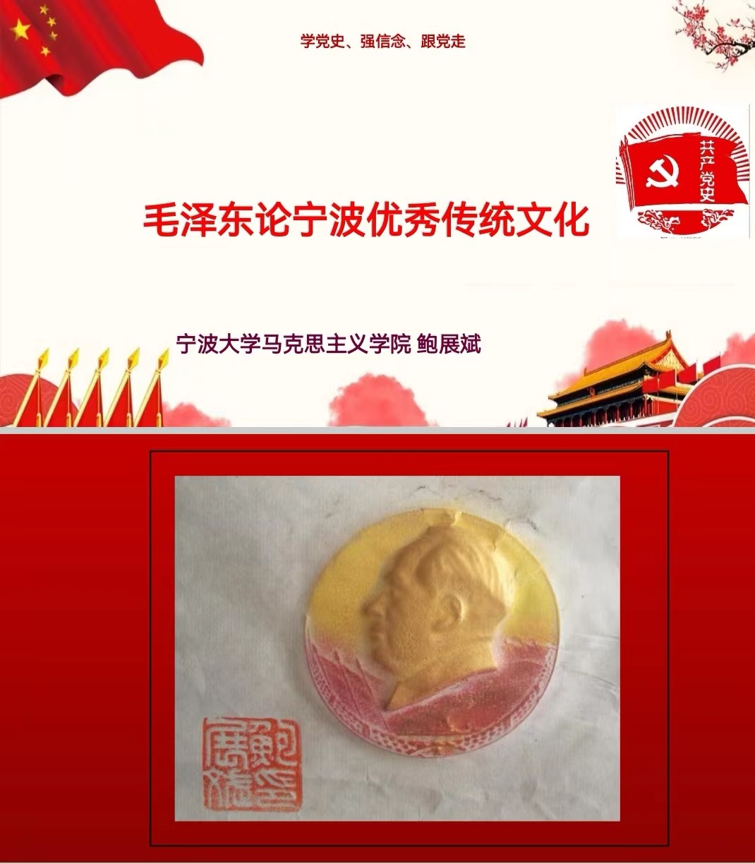 马克思主义基本原理党支部和哲学国学研究中心联合开展“毛泽东论宁波优秀传统文化”主题党日线上学术交流活动。活动由原理支部书记鲍展斌教授主持。