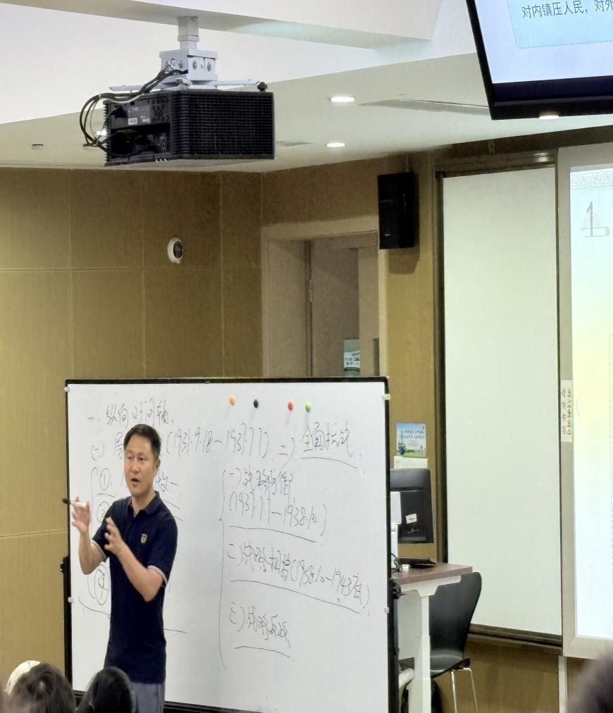 此次秦旭翔老师主讲的课程是《中国近现代史纲要》中“中华民族的抗日战争”专题的内容。首先,秦老师从纵向时间轴方面,采用史实和历史人物相结合的方式,讲述了日本侵华的原因、计划、过程以及国内当时的现状和对策。其中着重从战略防御、战略相持、战略反攻三个阶段讲述了全面抗战的经过、结果及意义。其次,秦老师通过讲解党的‘三大法宝’,带领同学们学习了中国人民抗击日本侵略战争、抗日战争中的正面战场与敌后战场,以及党在抗日战争时期总结的经验和教训、克服的各种错误作风和习气。最后,秦老师通过书本、课件及影视资料,带领同学们回顾了抗日战争的深刻历史,加深了同学们对这段历史的认知,取得了良好的教学效果和反馈。