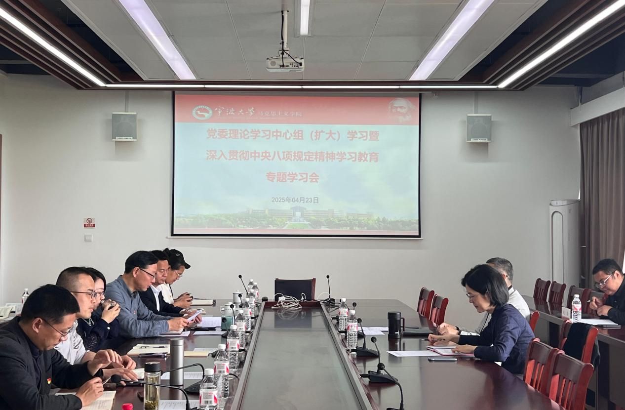 党委召开理论学习中心组学习(扩大)会暨深入贯彻中央八项规定精神学习教育专题学习会,深入学习领会习近平总书记关于加强党的作风建设的重要论述,学习贯彻中央八项规定及其实施细则精神。校党委副书记冯杰及巡听旁听组一行参加此次专题学习会,会议由院党委书记蒋开东主持。