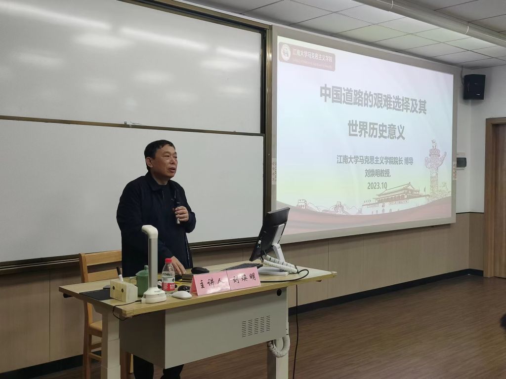 院长刘焕明教授以《中国道路的艰难选择及其世界历史意义》为主题,与宁大师生分享了他对中国道路的研究成果与深入见解。副院长刘举主持了本次讲座。