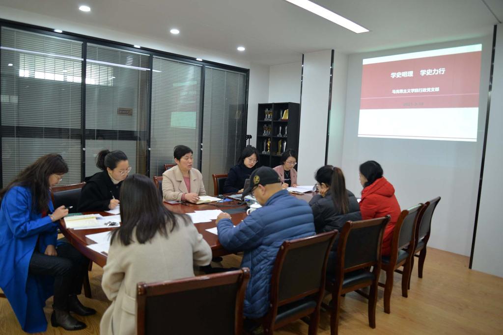 3月18日上午,学院行政党支部在7号楼525会议室召开党员大会。会议由支部书记吴莲红主持,学院党总支书记刘友女联系本支部在会上做了指导。