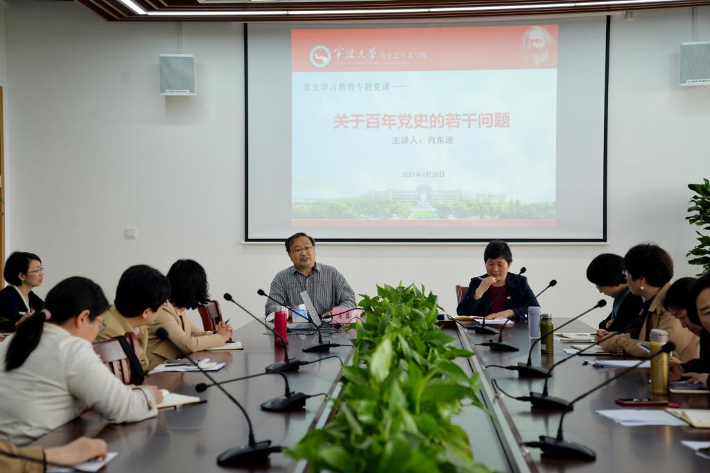 退休教授肖东波受邀来院作《关于百年党史的若干问题》专题讲座,带领学院教师学党史、悟思想,牢记初心使命、坚定理想信念。院党总支书记刘友女主持会议。