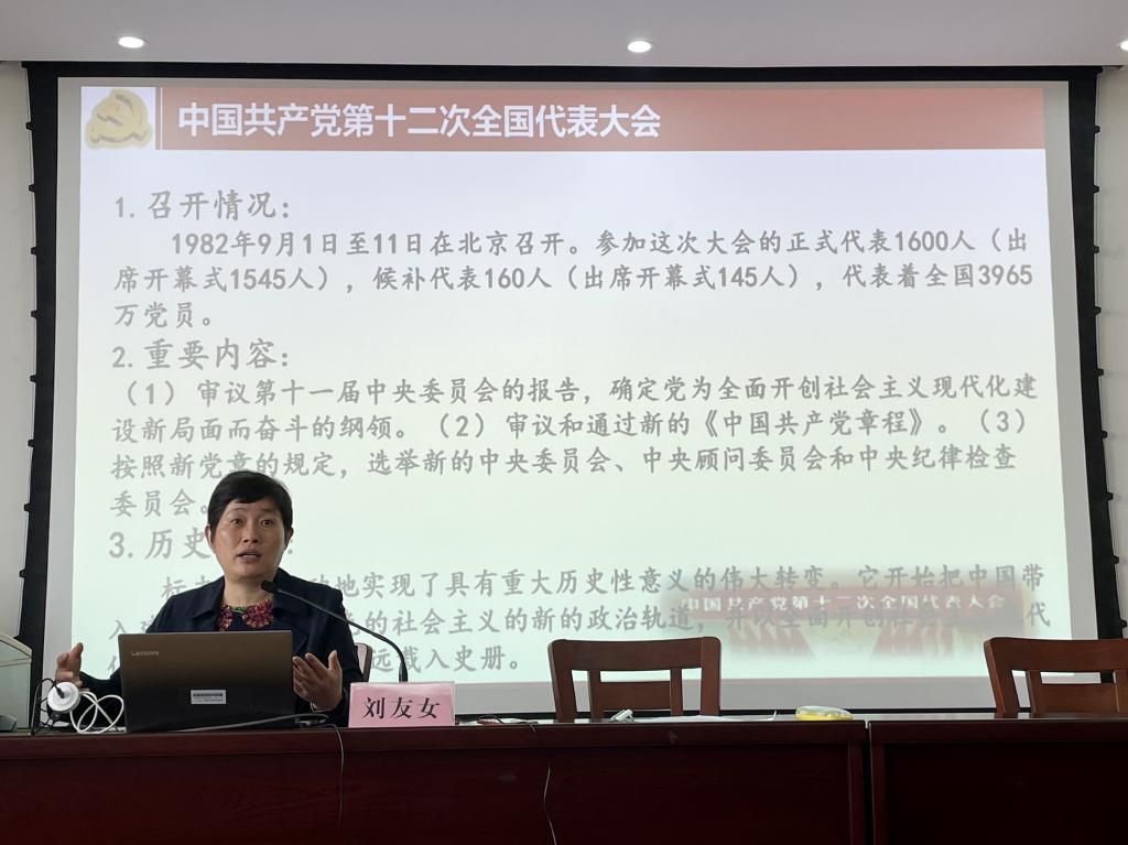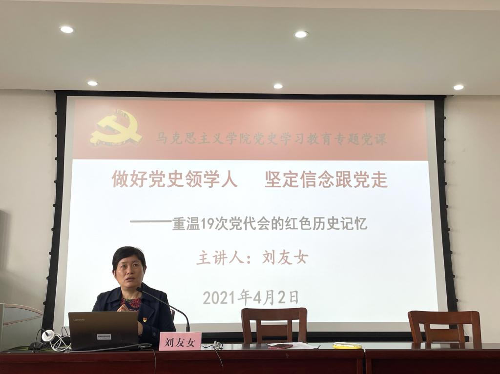 党史学习教育专题党课在7号楼406报告厅顺利开展。院党总支书记刘友女作题为《“做好党史领学人 坚定信念跟党走”——重温19次党代会的红色记忆》的专题党课,带领同学们重温建党的百年峥嵘历程。全院入党积极分子、发展对象、预备党员以及部分正式党员参加了此次党课学习。