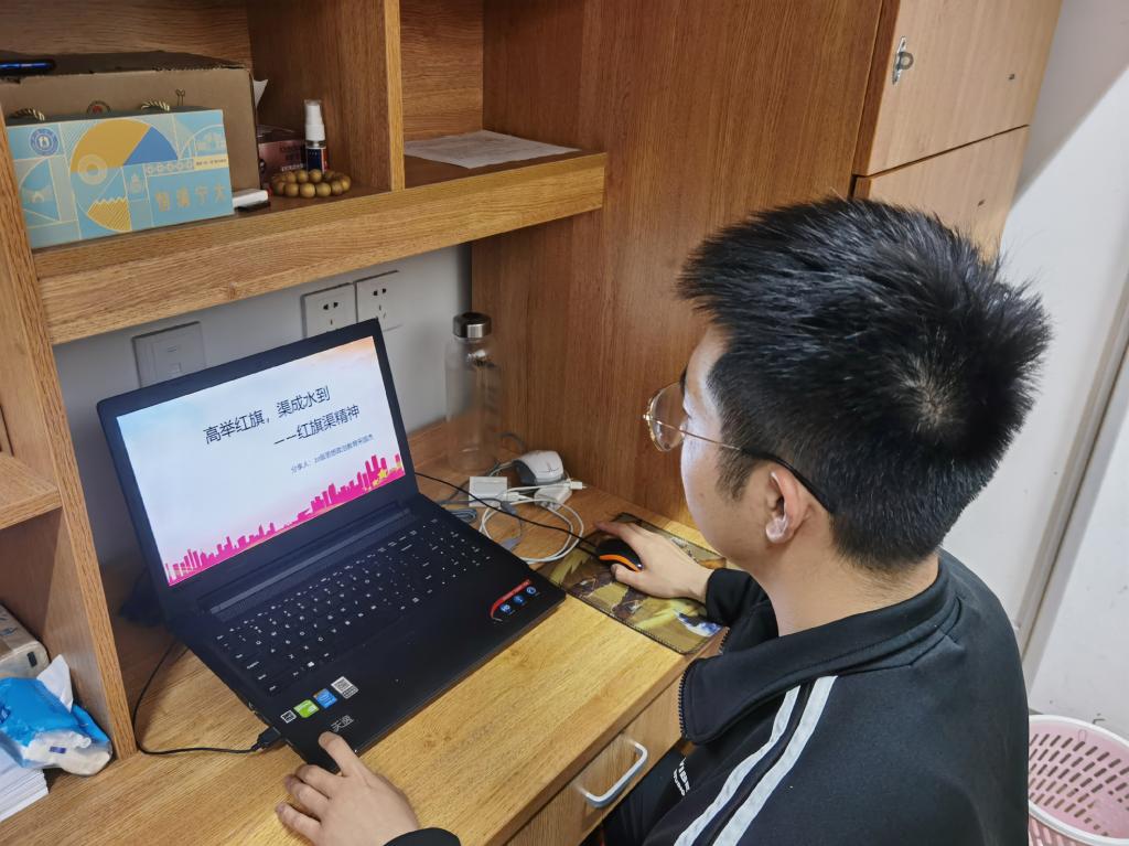 支部会后,全体成员以“学党史,忆初心,开新局”为主题开展了党史学习活动。在支部组织委员毛航的带领下,全体成员认真学习了校党委书记朱达在成人有声小说