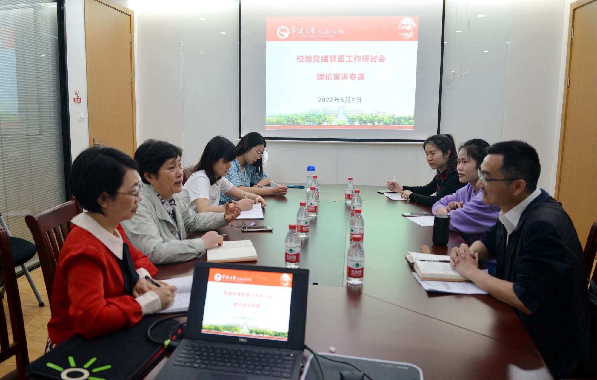 党总支与校地共建联盟单位宁波樟村四明山革命烈士陵园党支部在学院525会议室开展理论宣讲专题工作研讨会。宁波樟村四明山革命烈士陵园服务中心主任陈志斌一行2人,院党总支书记刘友女,学院组织员、团委书记、学生理论宣讲团团长、研究生思政党支部书记参与了此次会议。