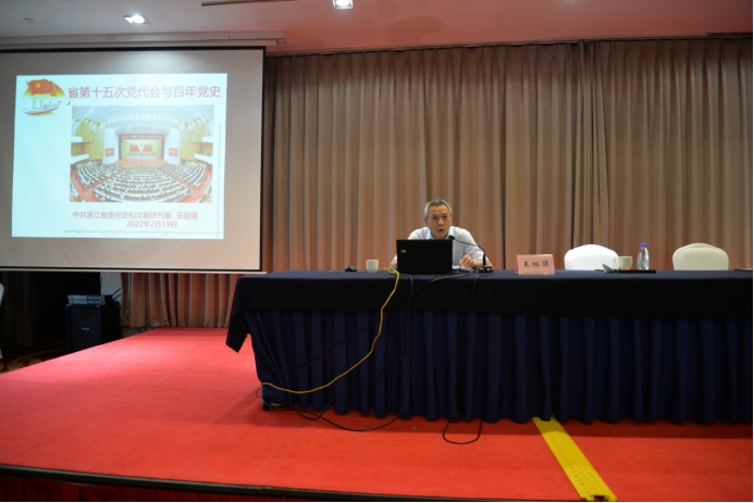 王祖强以《浙江省第十五次党代会与百年党史》为题,围绕“践行‘八八战略’投身‘两个先行’”主题,结合百年党史,从中国共产党的创建101年、浙江第一个党组织创建100年、中共浙江省委创建95年的发展史出发,重点阐释了省第十五次党代会的历史坐标、历史脉络、关键词和主要精神。报告逻辑严谨,史料丰富,理据详实,说服力强,具有很强的理论性与指导性。使与会教师深刻理解了省第十五次党代会“三个突出”的核心要义:突出坚定不移做“两个确立”忠诚拥护者、“两个维护”示范引领者;突出忠实践行“八八战略”;突出在高质量发展中奋力推进共同富裕先行和省域现代化先行。