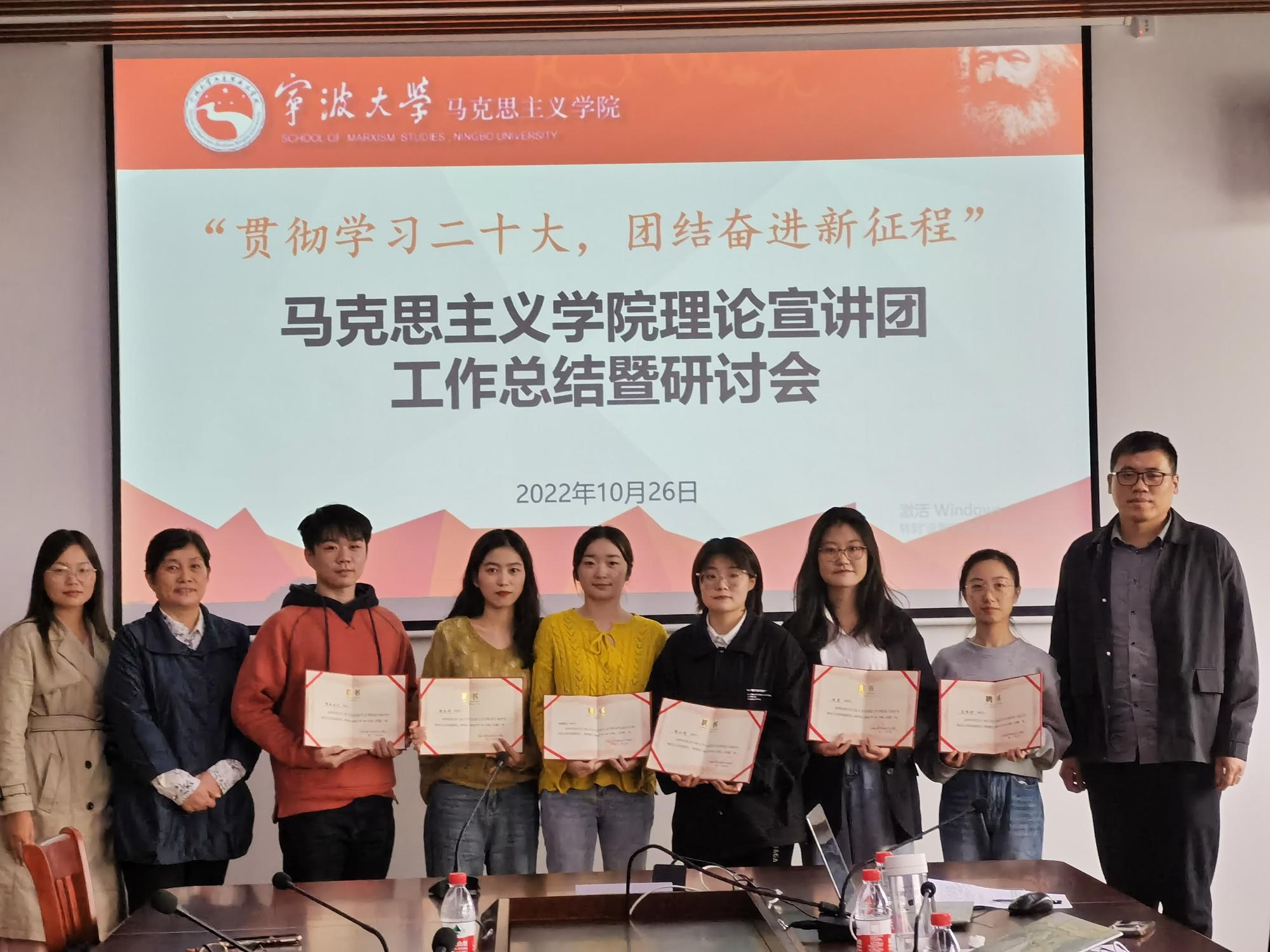 第十届宣讲团团长樊小雅从宣讲团成长历程、宣讲情况、宣传水平等方面对理论宣讲团十年来的工作进行了回顾总结。宣讲团新老团长、党支部新老书记也对各自情况作了介绍。